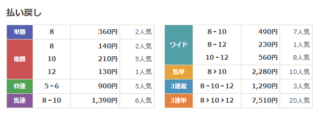 リライアズシリウスは5着でした。悪くない結果ですが、馬券には絡めず。