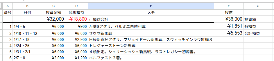 シーズン2の第6回が終了して、損益は以下のとおりです。