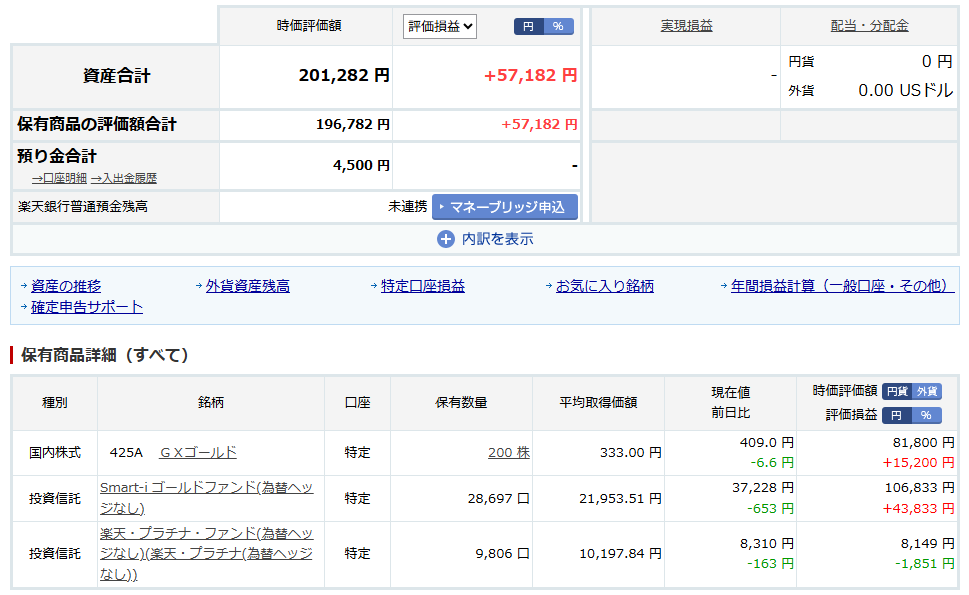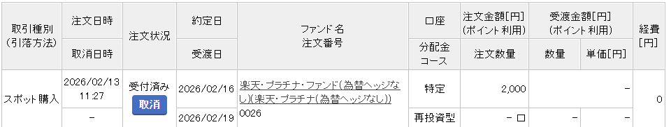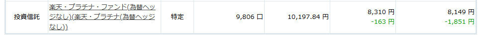 今回購入した銘柄も楽天・プラチナ・ファンド(為替ヘッジなし)です。