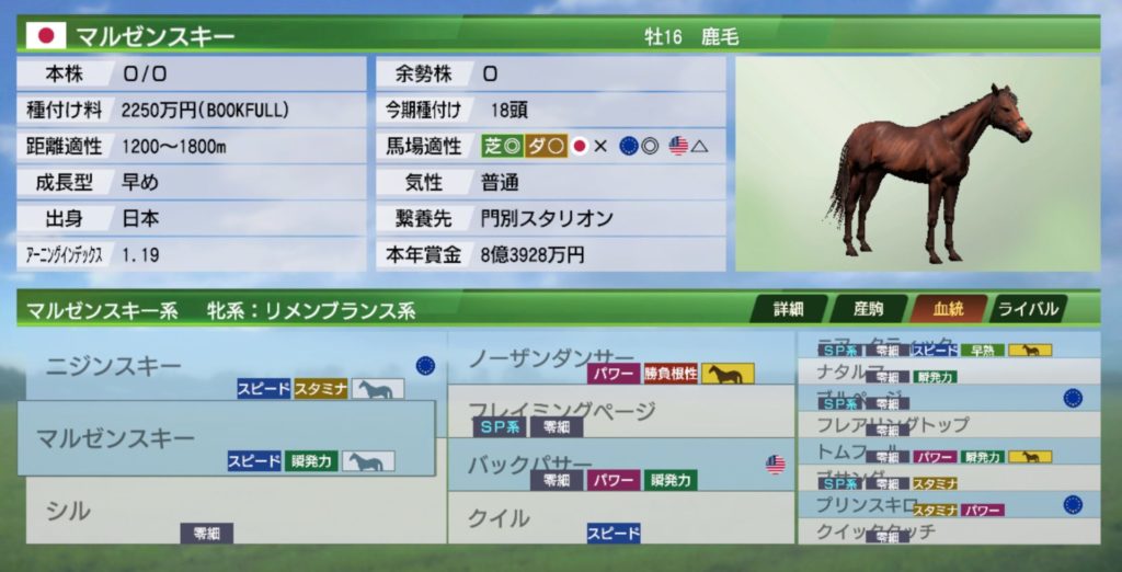 ここからノーザンテーストもマルゼンスキーも支配率は下がっていくだけになるとは思いますが、早めに下がって欲しいですね。