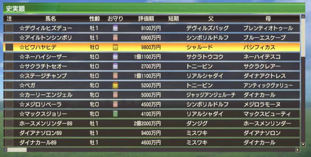 ナイスナイスナイスのみ史実馬で残りは架空馬でしたが、全て種牡馬入りできました。