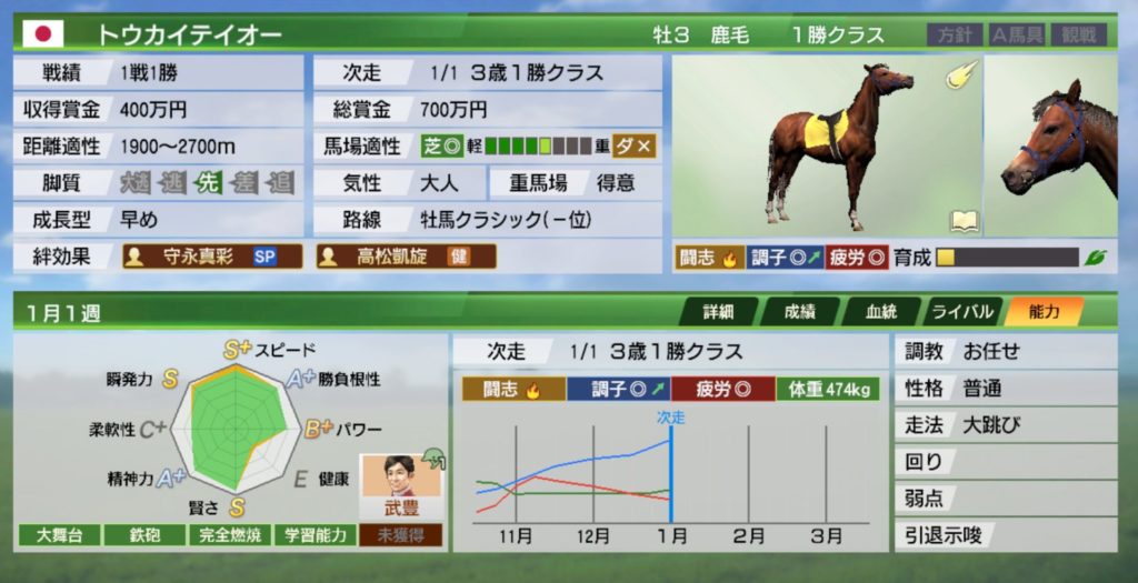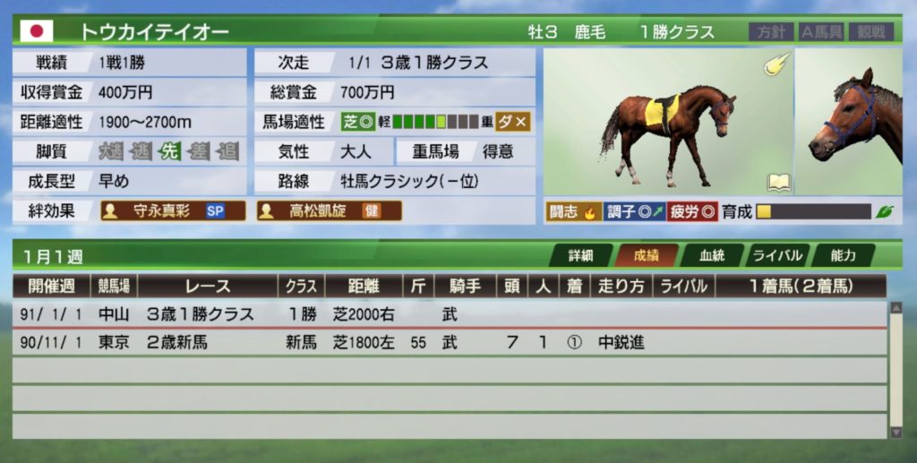 とりあえずトウカイテイオーも長く現役を続けるつもりですので、2歳に活躍できなくても大丈夫と判断しました。